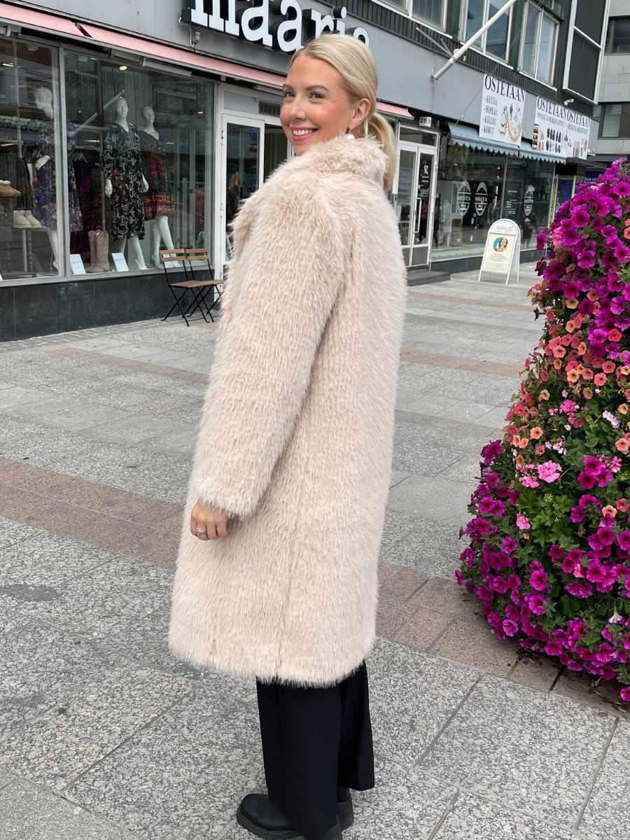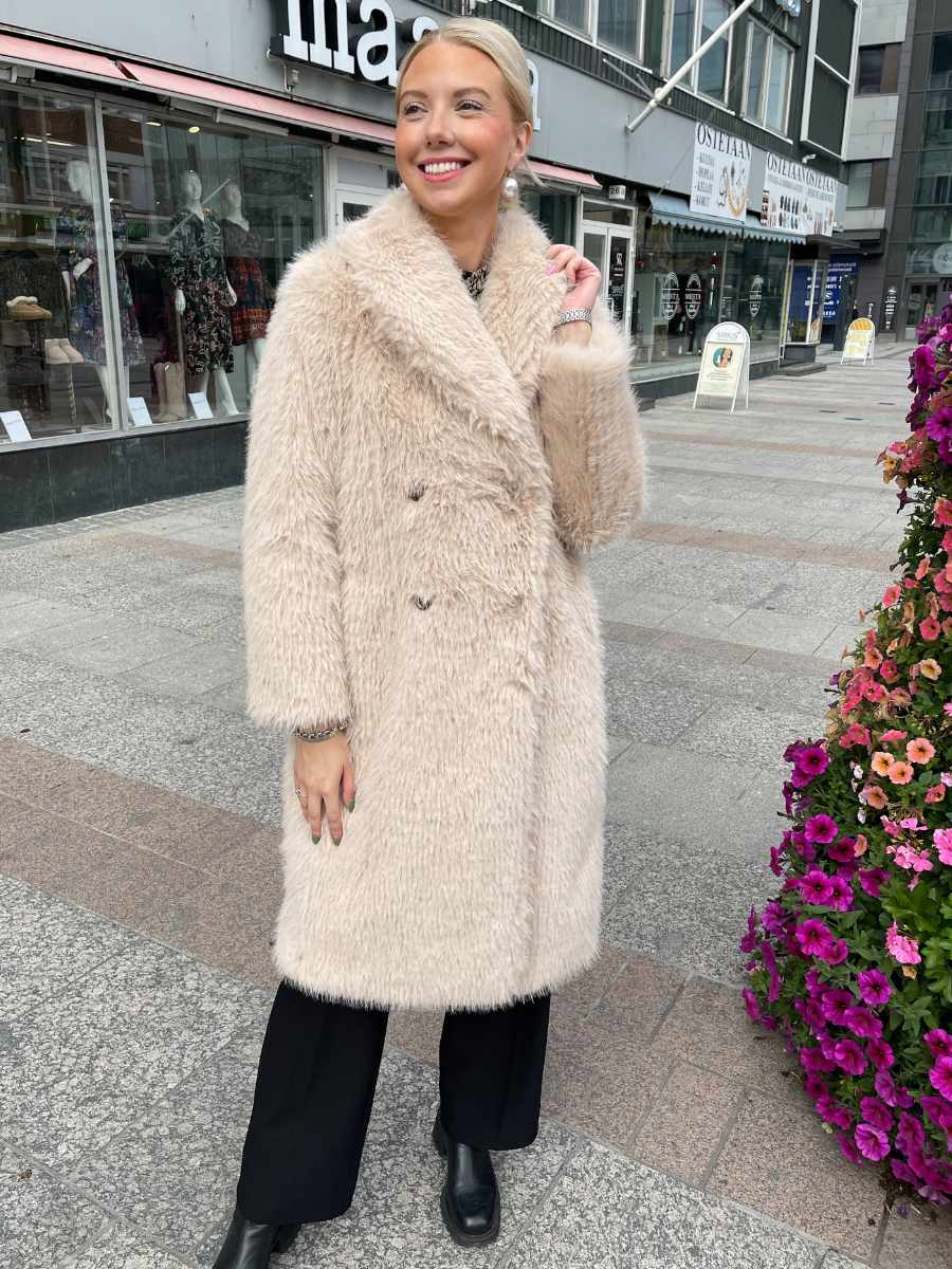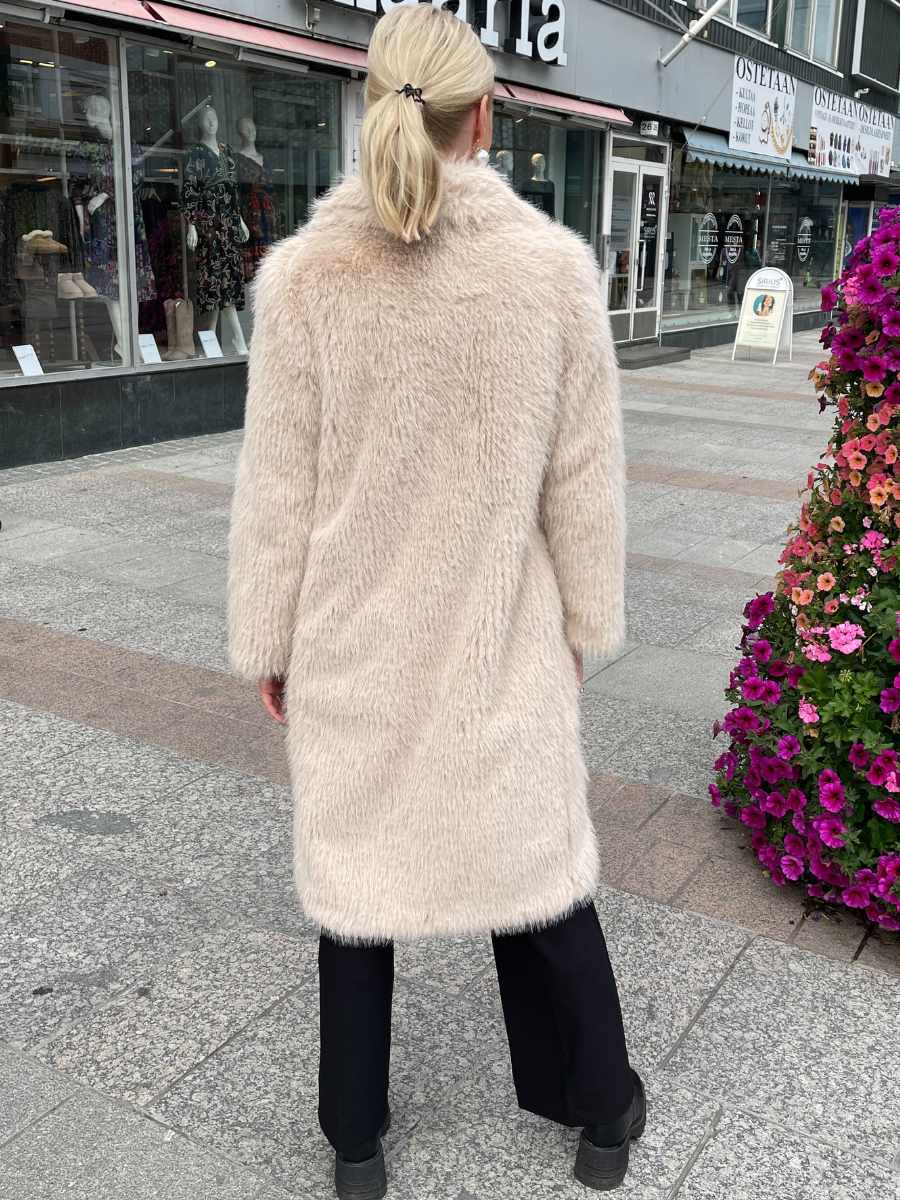 Lämpimän tyylikäs teddy-pörrötakki on täydellinen valinta kylmiin päiviin. Pehmeä ja muhkea materiaali tuo ylellisen ilmeen, samalla kun pitkä malli ja klassinen kaulus tekevät takista ajattoman.