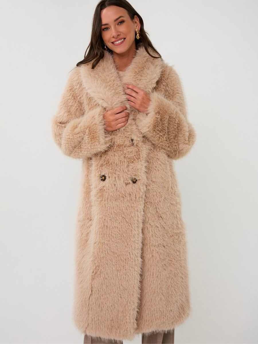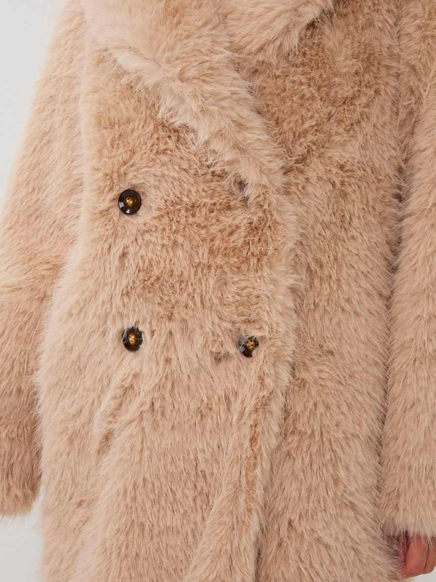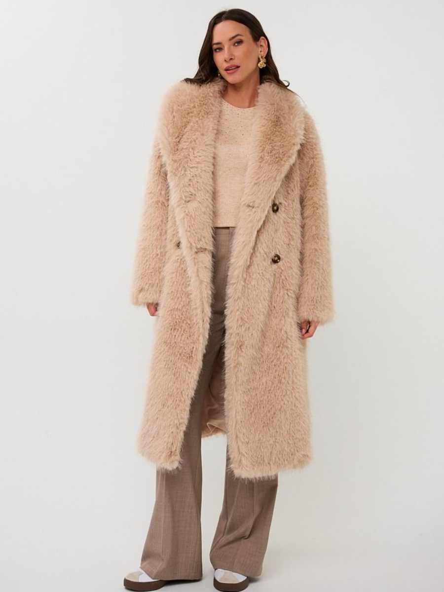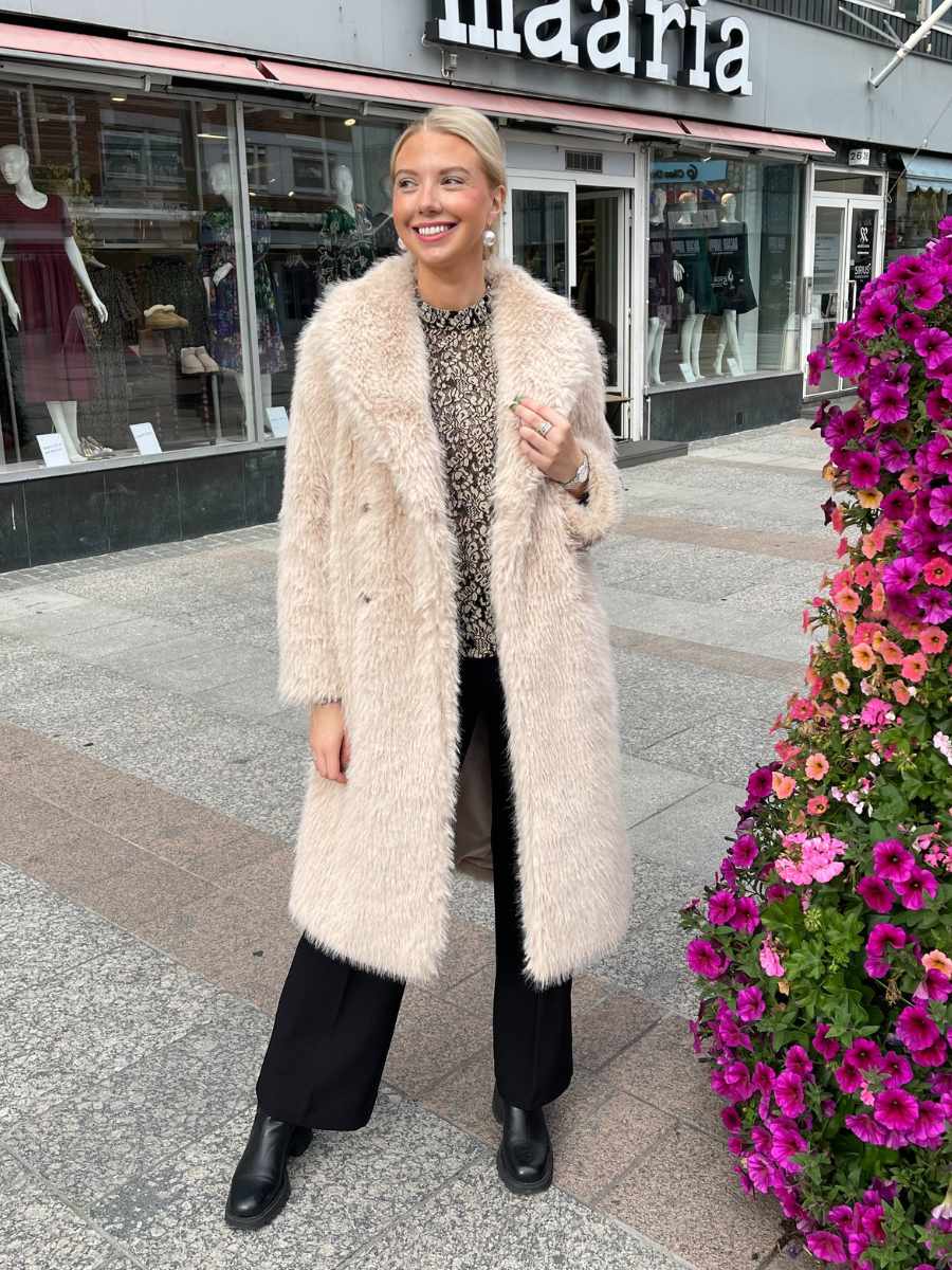 Lämpimän tyylikäs teddy-pörrötakki on täydellinen valinta kylmiin päiviin. Pehmeä ja muhkea materiaali tuo ylellisen ilmeen, samalla kun pitkä malli ja klassinen kaulus tekevät takista ajattoman.
