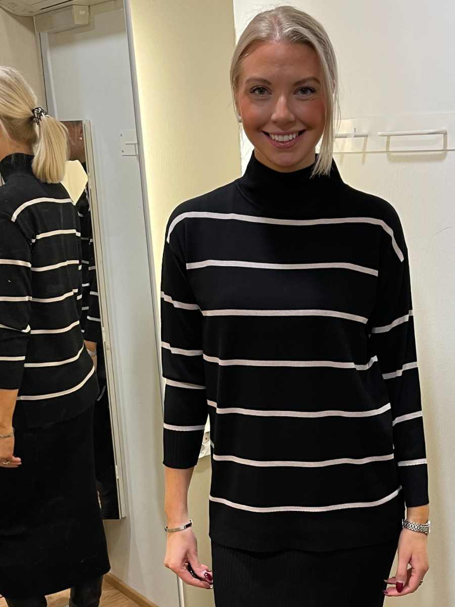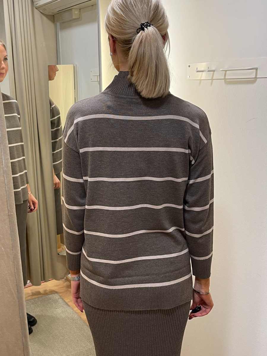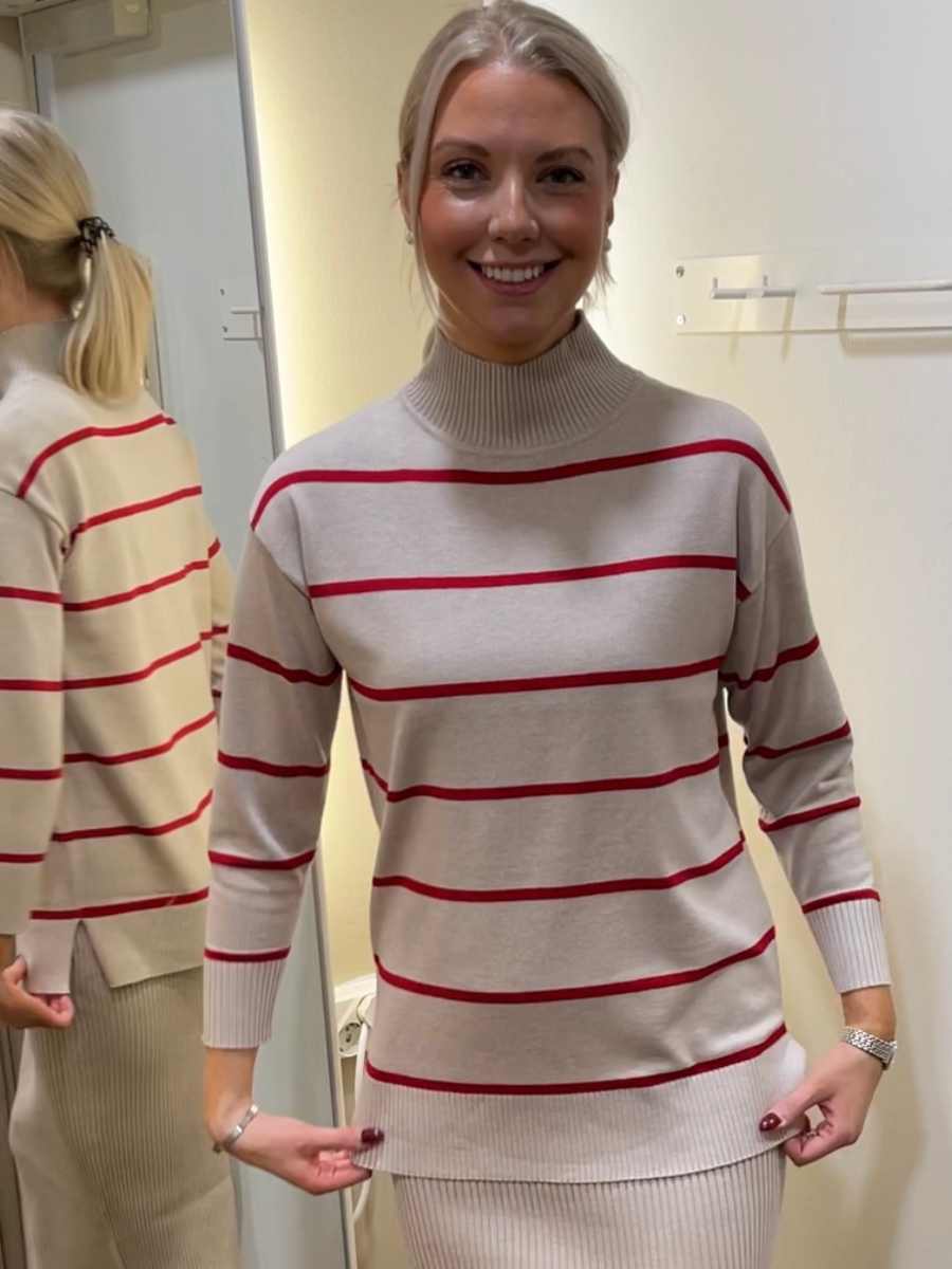 Hillityt vaakaraidat ja korkeampi kaulus tekevät kokonaisuudesta ajattoman tyylikkään – Yhdistä saman sarjan neulehameeseen tai -housuihin.