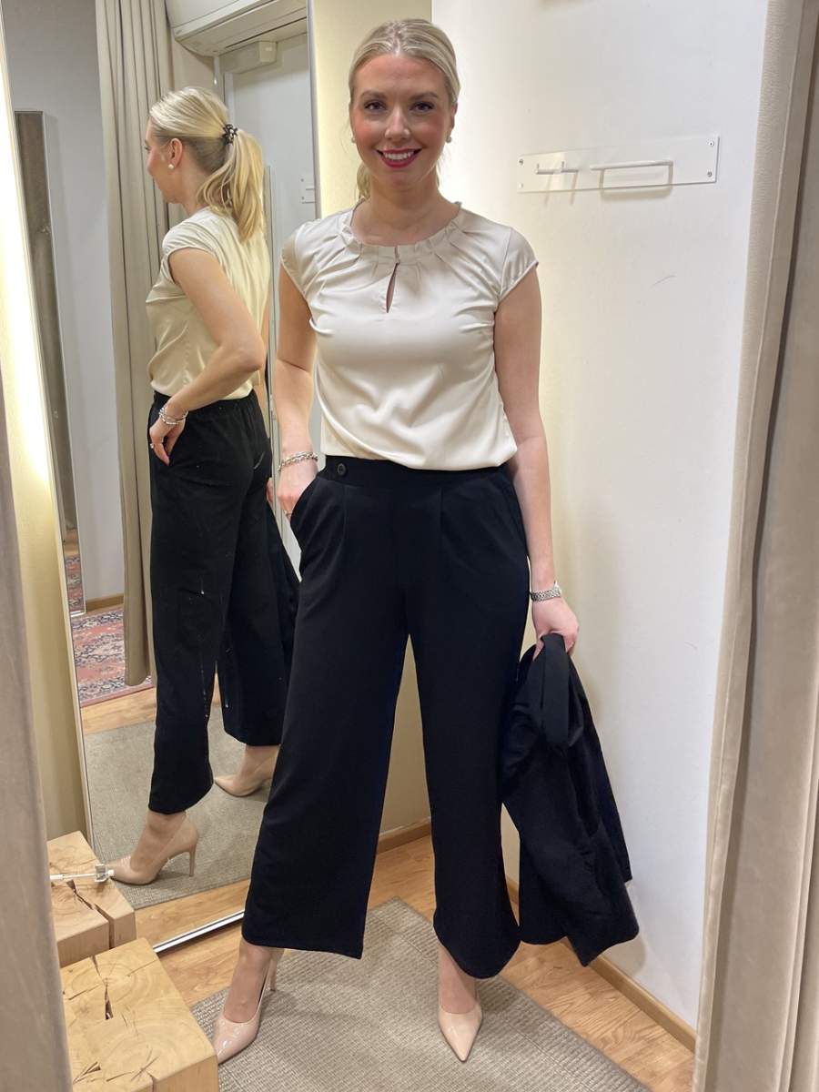 Koko / Vyötärönympärys venytettynä / Housun sivupituus / Haara-lahje