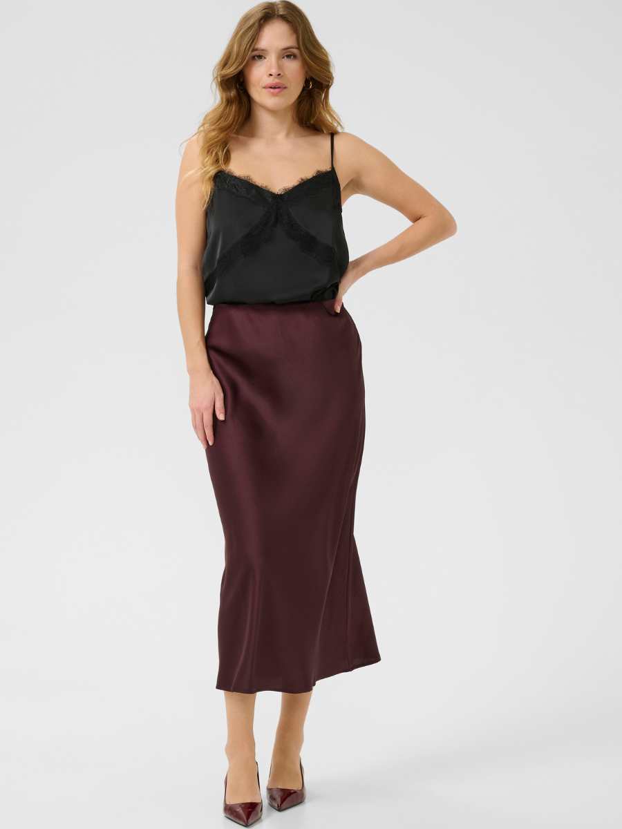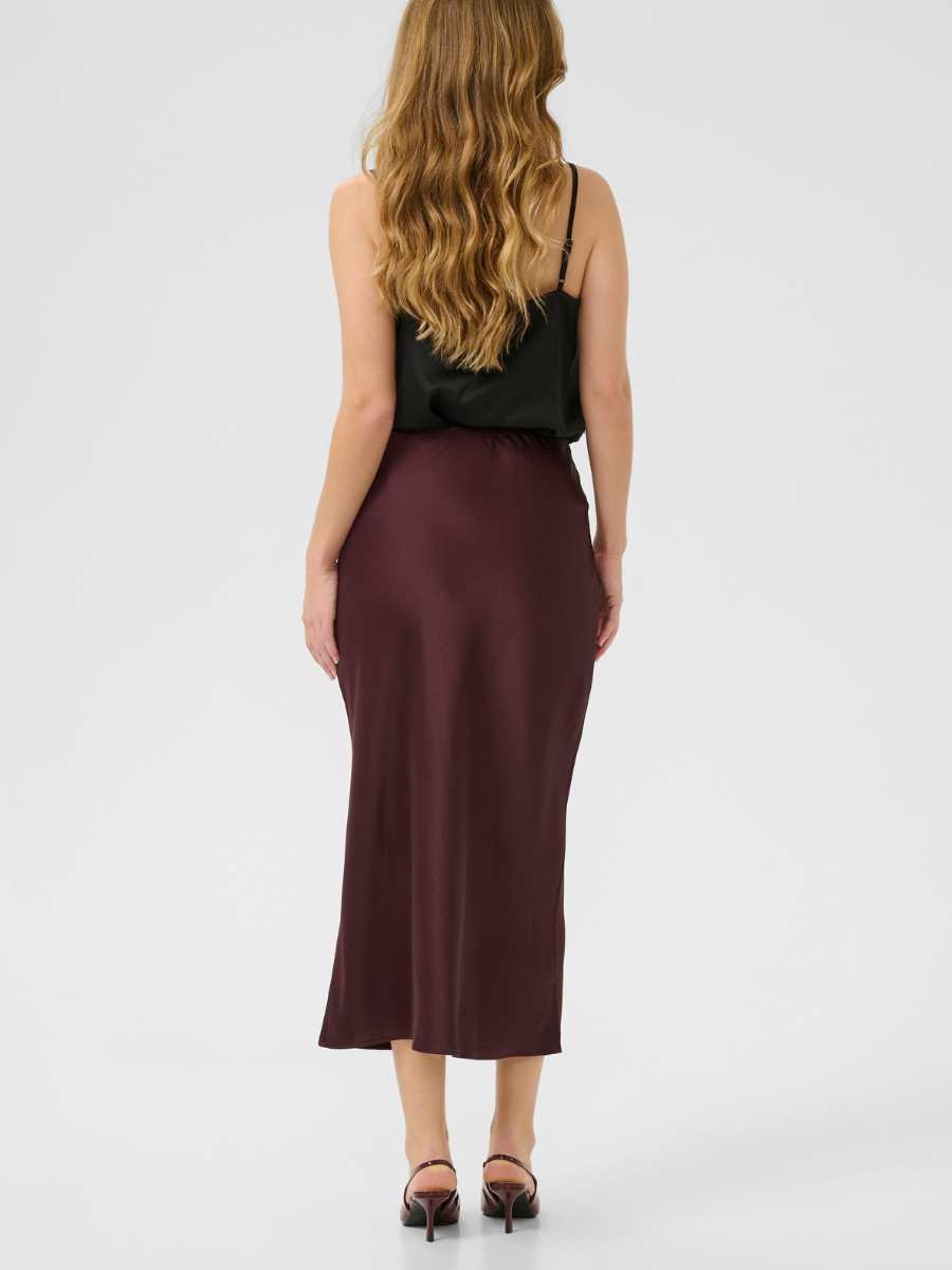 Tyylikäs ja ajaton Kaffe Lotte -hame on valmistettu kauniisti hohtavasta satiinikankaasta. Suoralinjainen leikkaus luo elegantin siluetin, joka sopii niin arkeen kuin juhlaan.