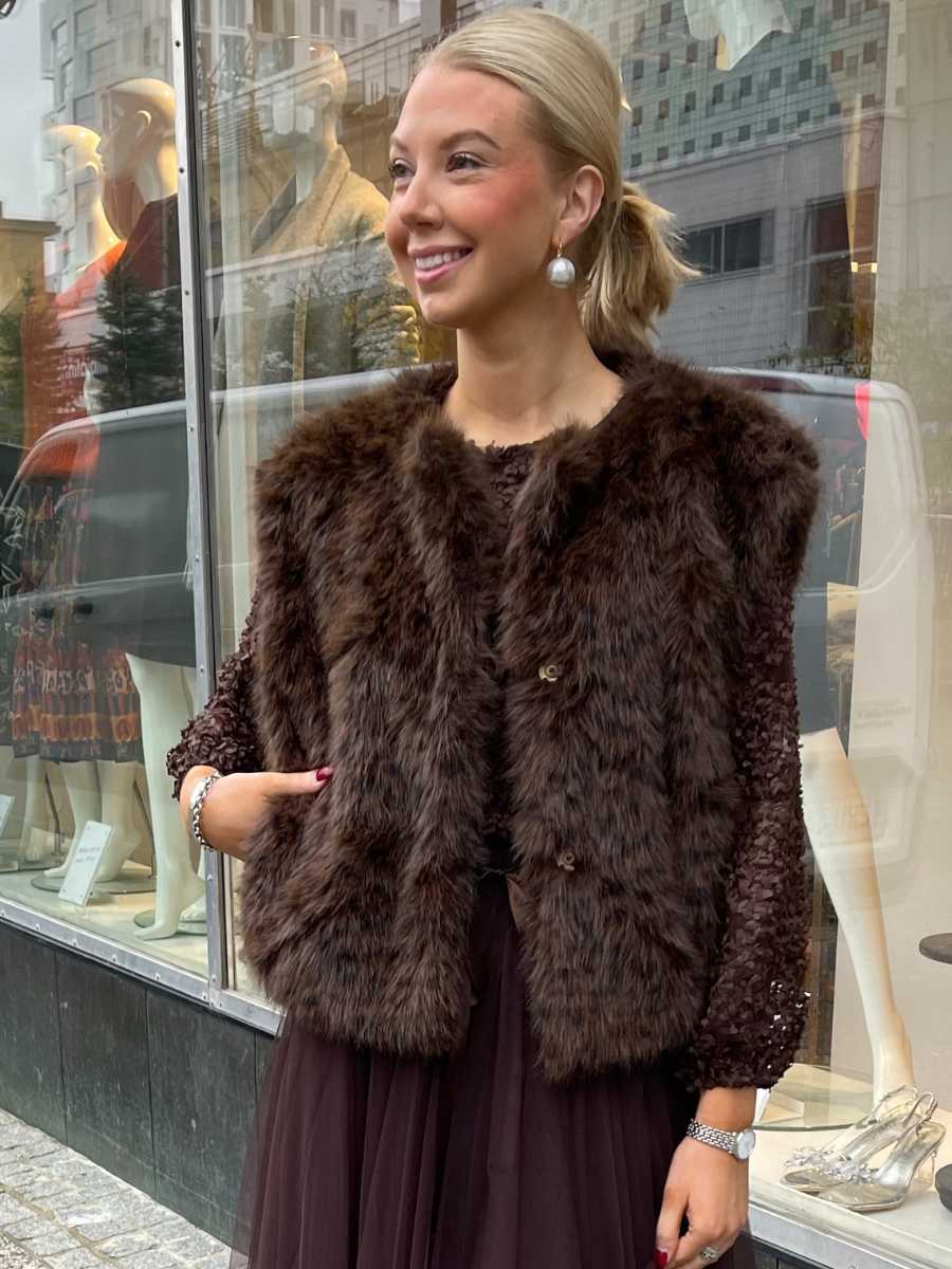 Upea leo-karvaliivi tuo asuusi ylellistä pehmeyttä ja trendikästä ilmettä! Liivissä on pehmeä tekoturkis, joka tuntuu miellyttävältä päällä ja antaa asulle näyttävän viimeistelyn.