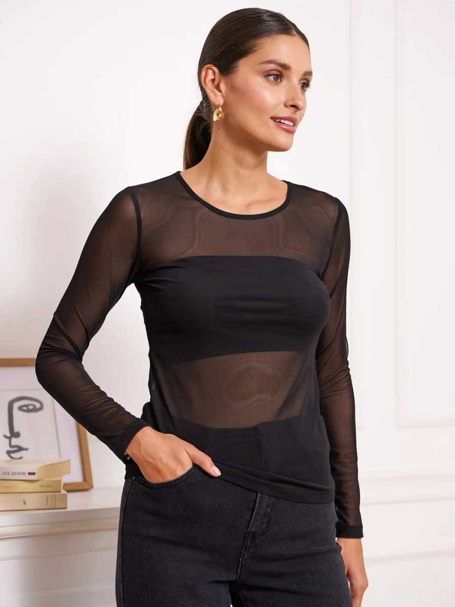 Tämä meshpusero on täydellinen yhdistelmä keveyttä, rohkeutta ja hienostuneisuutta. Hienosti laskeutuva, hengittävä kangas luo ilmavan siluetin ja tuo asuusi ripauksen modernia eleganssia. Yhdistä Ruusutarha puseron kanssa.