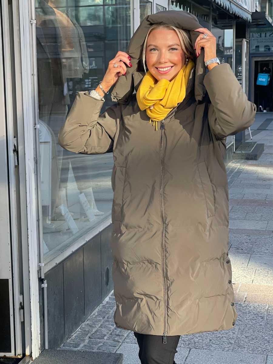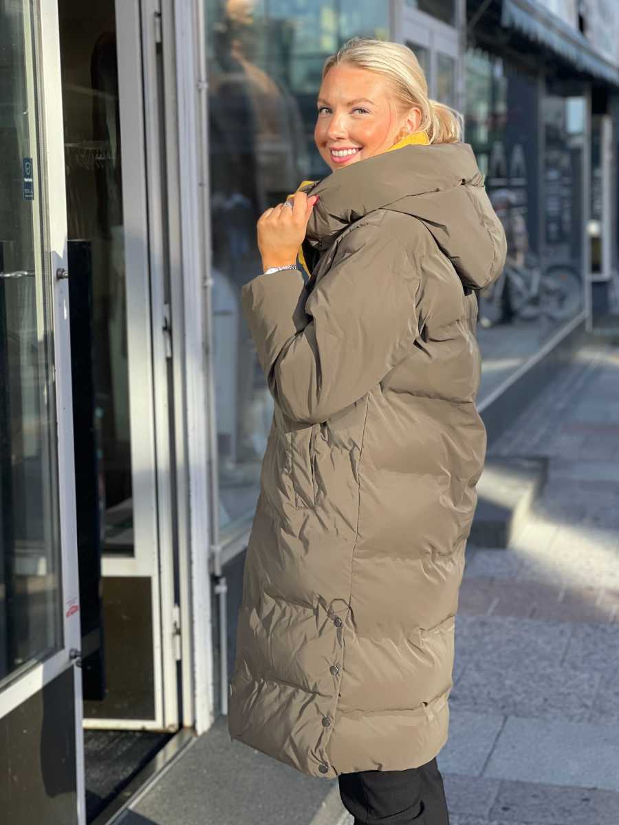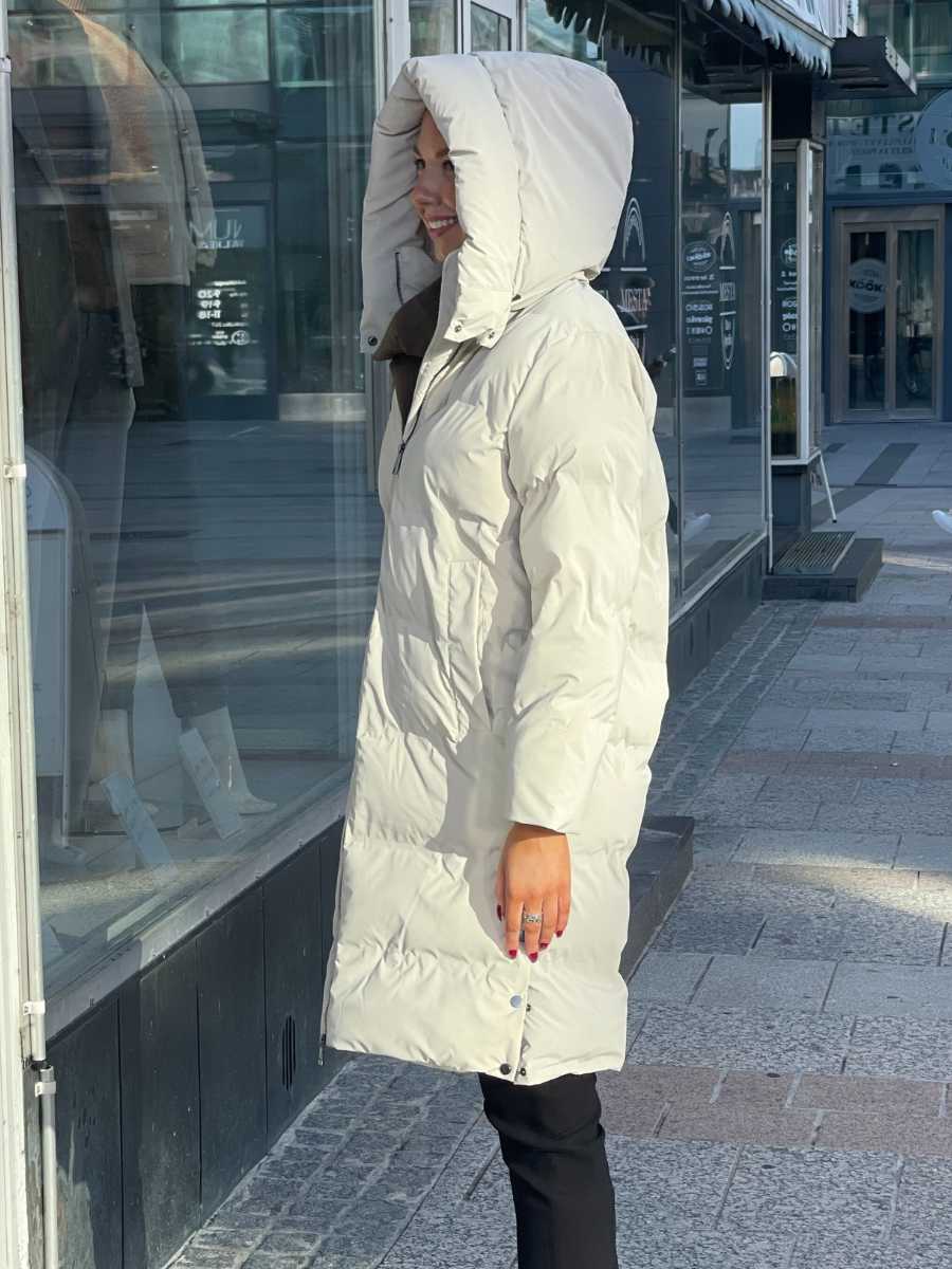 Toppatakki Midi, murrettu valkoinen ja ruskeanharmaa