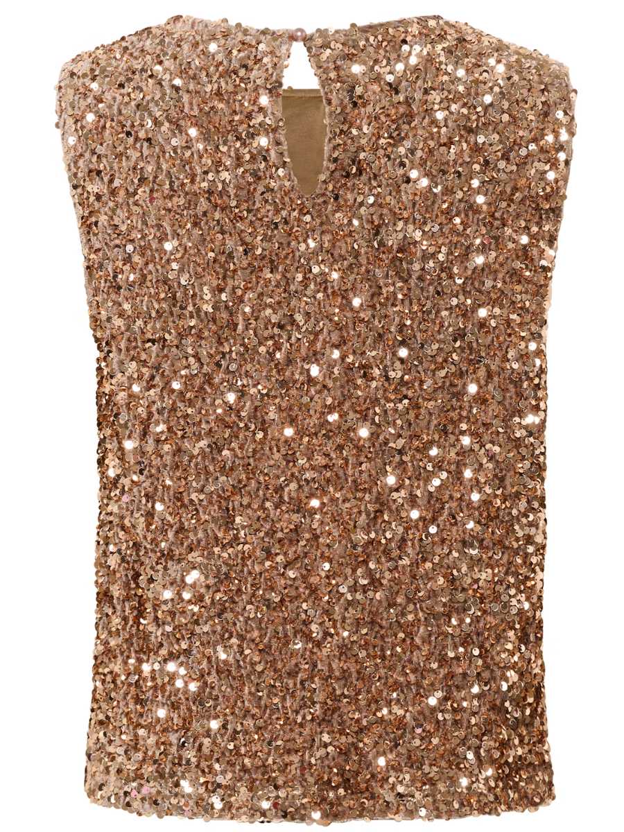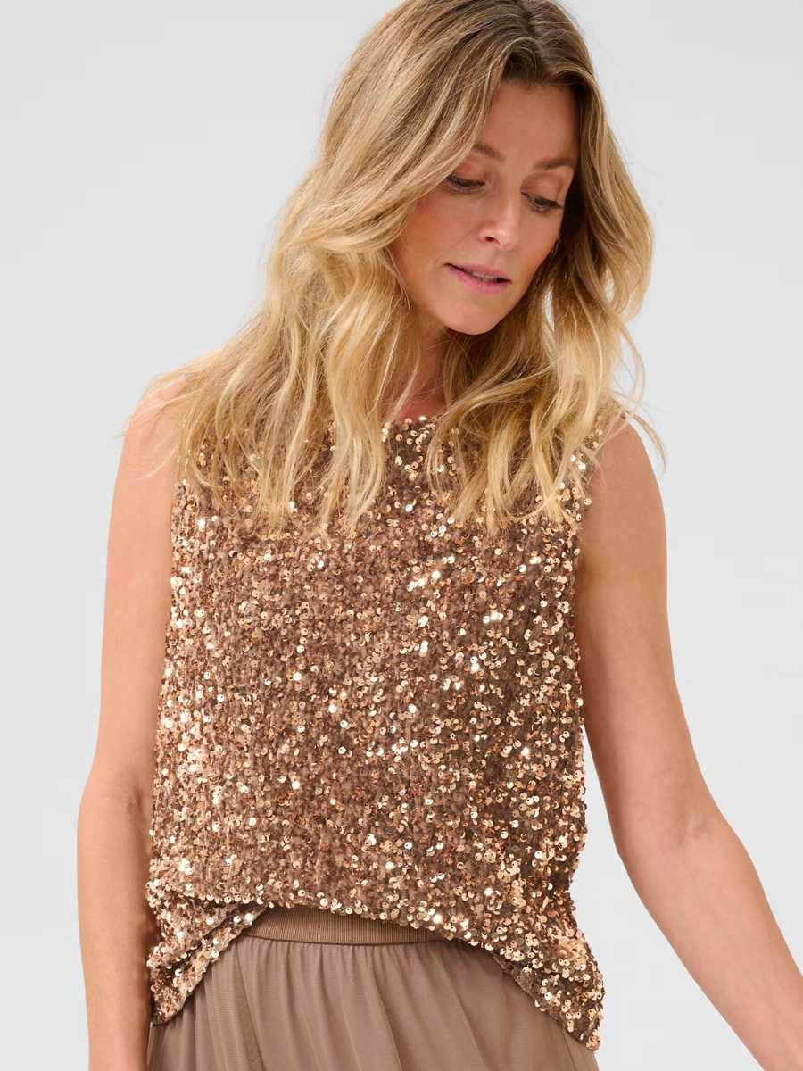 Tämä upea paljettitoppi tuo asuusi näyttävää juhlatunnelmaa. Pehmeä aluskangas tekee topista miellyttävän päällä, ja pyöreä pääntie luo klassisen ilmeen. Takana oleva nappikiinnitys viimeistelee tyylin hienostuneesti. Yhdistä meidän tyllihameiden, Tafta hameen kanssa. Sopii hyvin myös housujen kanssa yhdistettäväksi.