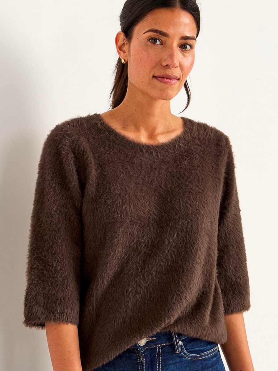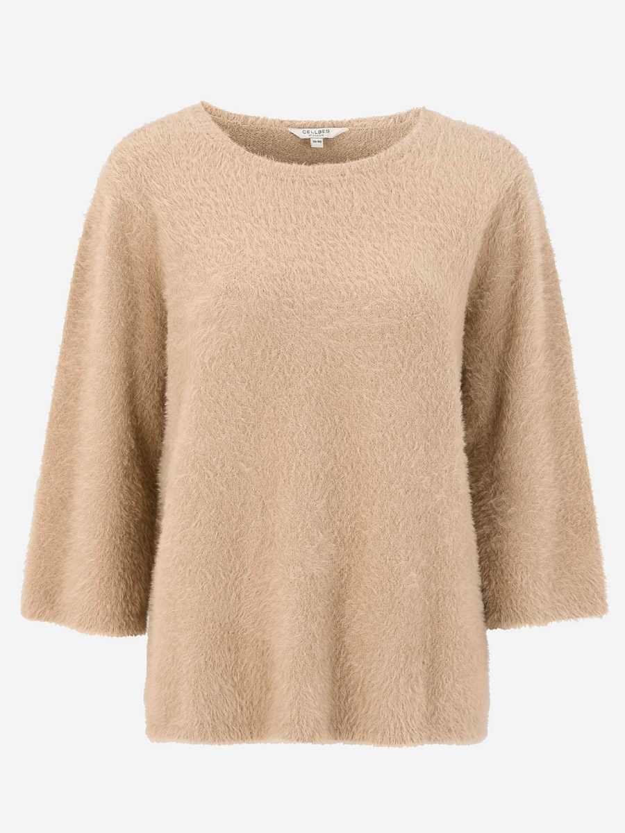 Rento istuvuus, klassinen pyöreä pääntie ja 3/4-pituiset hihat tekevät pörröpuserosta helposti yhdisteltävän farkkujen, hameiden tai leggingsien kanssa.