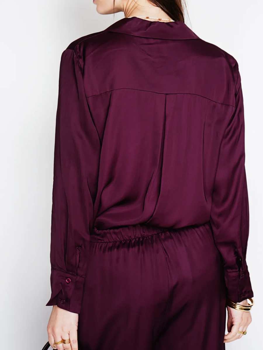 Tämä upea viskoosisatiinipusero on täydellinen valinta, kun haluat yhdistää tyylikkyyden ja mukavuuden. Puseron sileä ja kevyesti kiiltävä pinta antaa asulle ylellisen ilmeen, ja materiaali tuntuu miellyttävältä ihoa vasten. Klassinen kaulus ja napitus tekevät siitä monikäyttöisen valinnan niin arkeen kuin juhlaankin. Yhdistä saman sarjan Silva satiinihameen kanssa.
